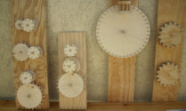 Modell eines Hammerwerkes. Wir sehen, wo der Hammer hängt und drehen am Rad.